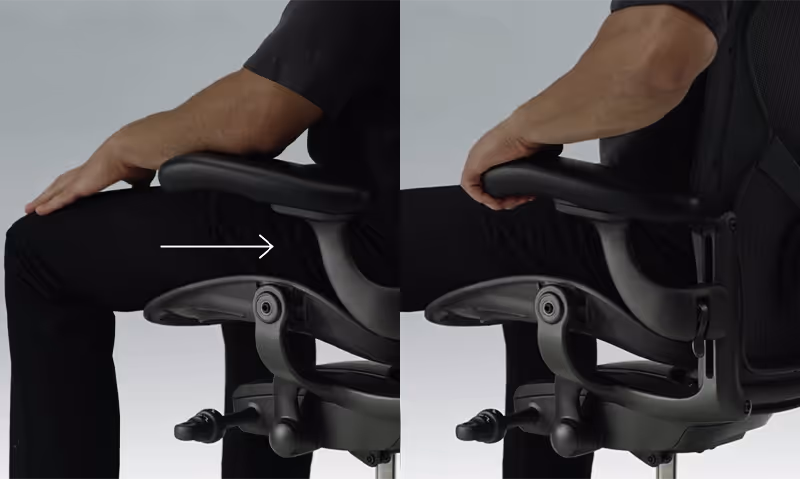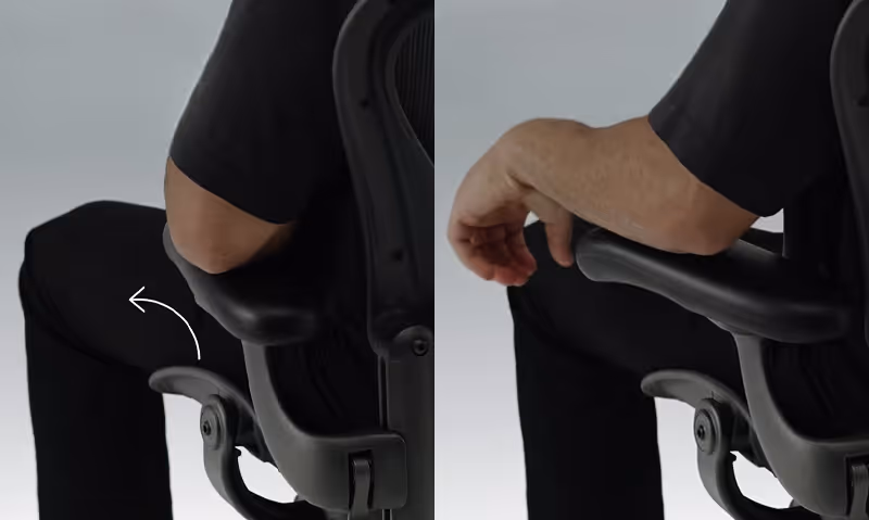 Подлокотники Aeron двигаются вверх-вниз, вперёд-назад и поворачиваются в стороны. Это позволяет расслабить руки, снять напряжение с плеч и шеи и снизить риск развития проблем с суставами запястий. Особенно удобно регулировать подлокотники по глубине и углу, поскольку не нужно прилагать лишних усилий – двигайте руку, а подлокотник, на котором она лежит просто подвинется в ту же сторону.