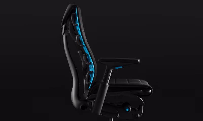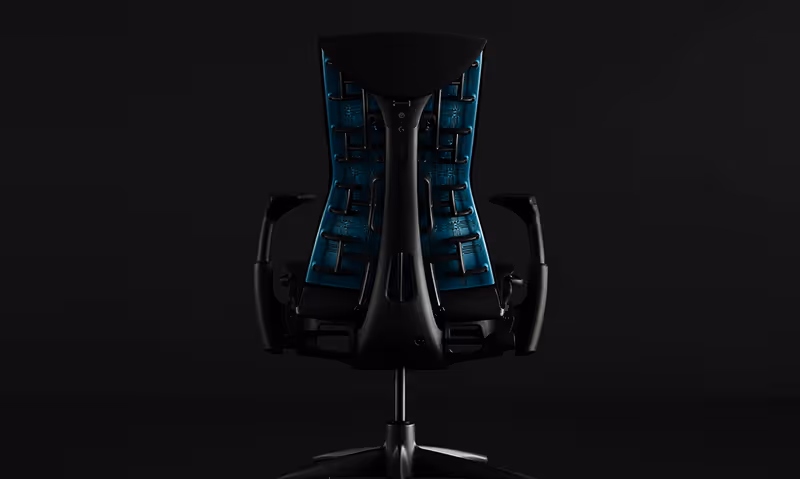 Ключевым преимуществом Embody x Logitech G является его адаптивная эргономика, направленная на поддержку тела даже при многочасовых игровых сессиях. Как и в оригинальном Embody, основой кресла является технология LiveBack, которая имитирует движения позвоночника, позволяя спинке адаптироваться к естественным изгибам тела. Это обеспечивает динамическую поддержку и снижает напряжение в спине, предотвращая усталость даже при длительном сидении.